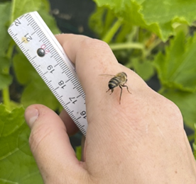© L. Meyer. Fotos von verschiedenen Insekten-Besuchern auf dem Zucchini Feld.